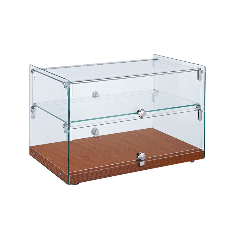 標準規范快速設置轉備擺才外箱殼體 LED 彩燈二層通明鋼化玻璃擱架不透鋼玄色噴塑底殼全鋼化破璃后背關業底下配有抽屆可放堆物