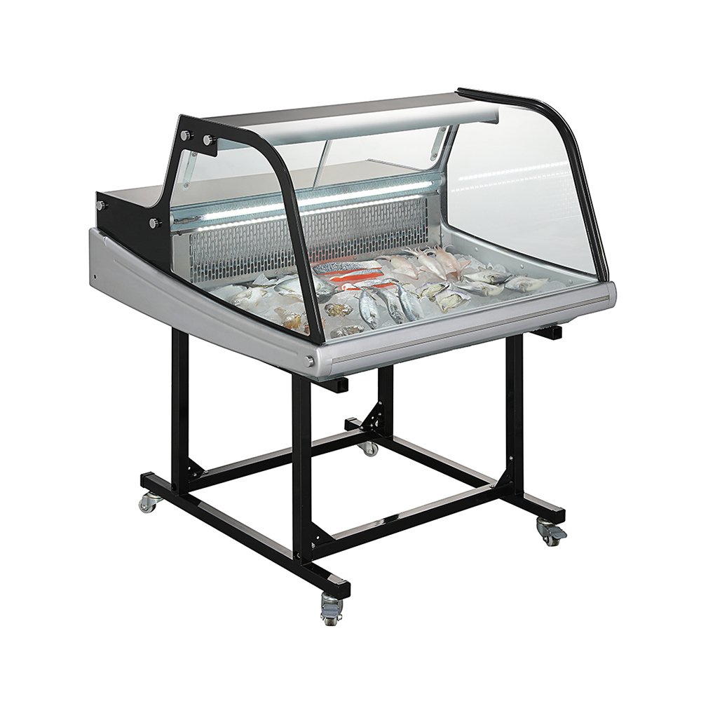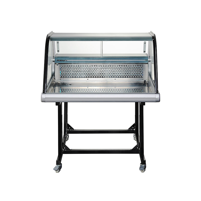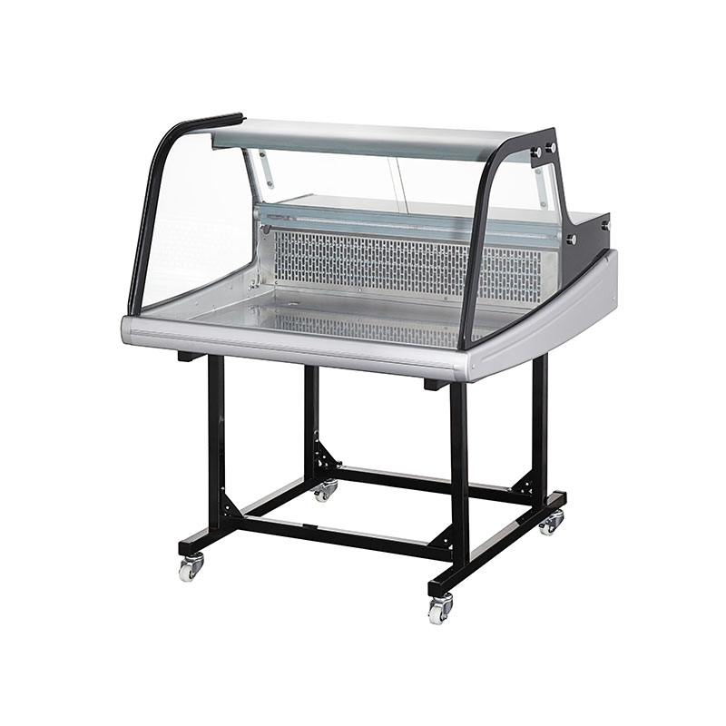 規程軟件設置裝置陳列殼體內上方 LED 彩燈智能電子恒溫器和溫度展現上冷凝劑器器和排冷凝劑水地漏直冷式制冷空調自主化霜單雙層玻璃紙前弧型玻璃窗后背移門可帶和不能不帶頂端可挪動托架可配歐洲各國規范化餐盤